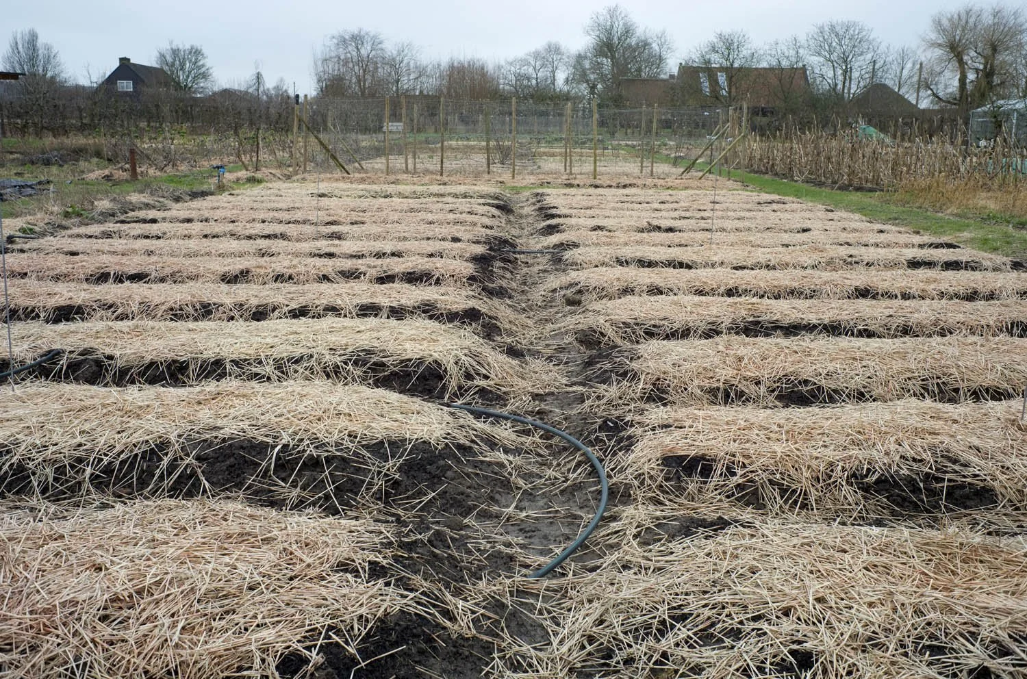 The Proeftuin van Linschoten at the beginning of a new growing season. Cultivation beds are still covered with straw. February 2024