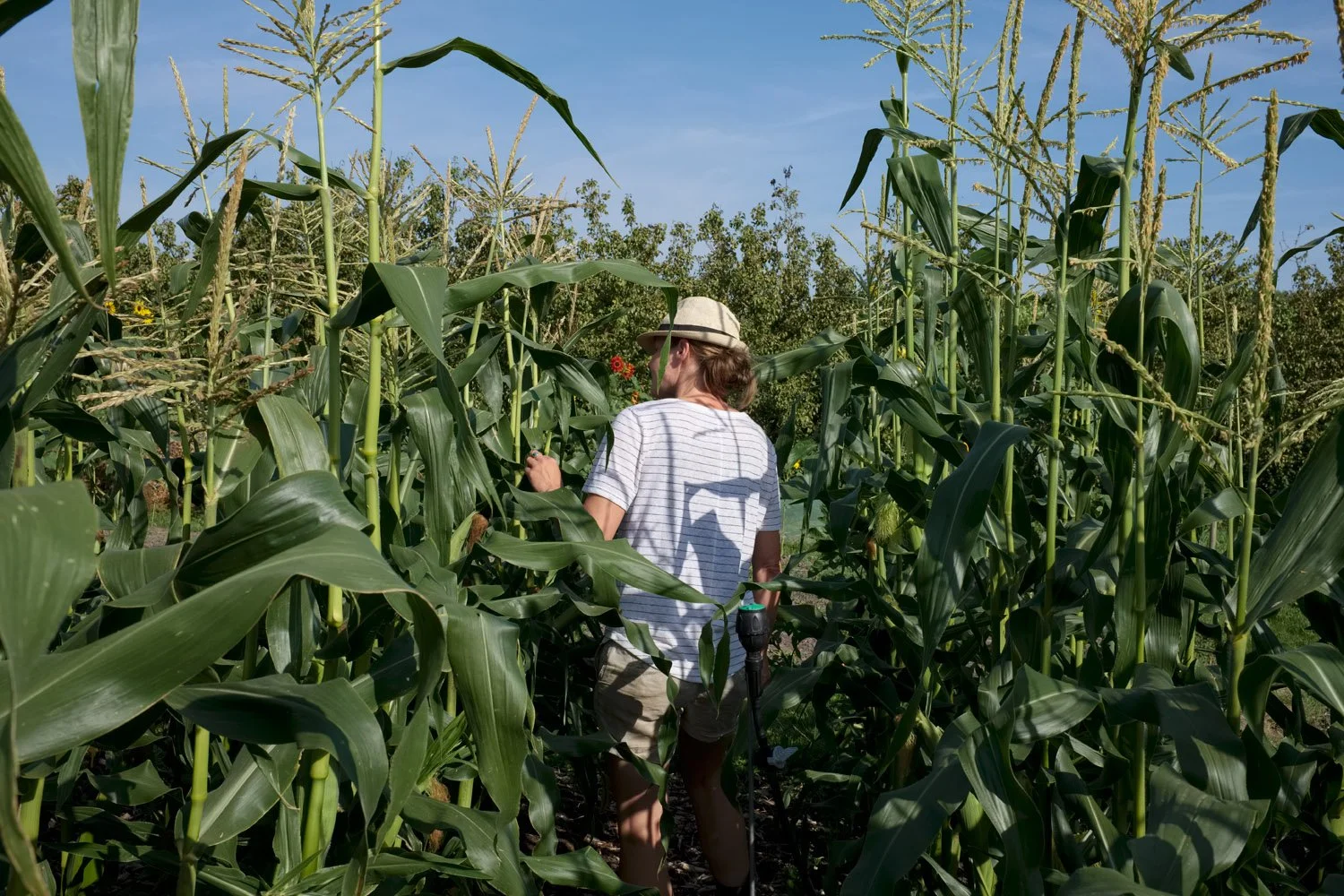Gardener Jantien checks whether the corn on the cob can already be harvested. August 2024