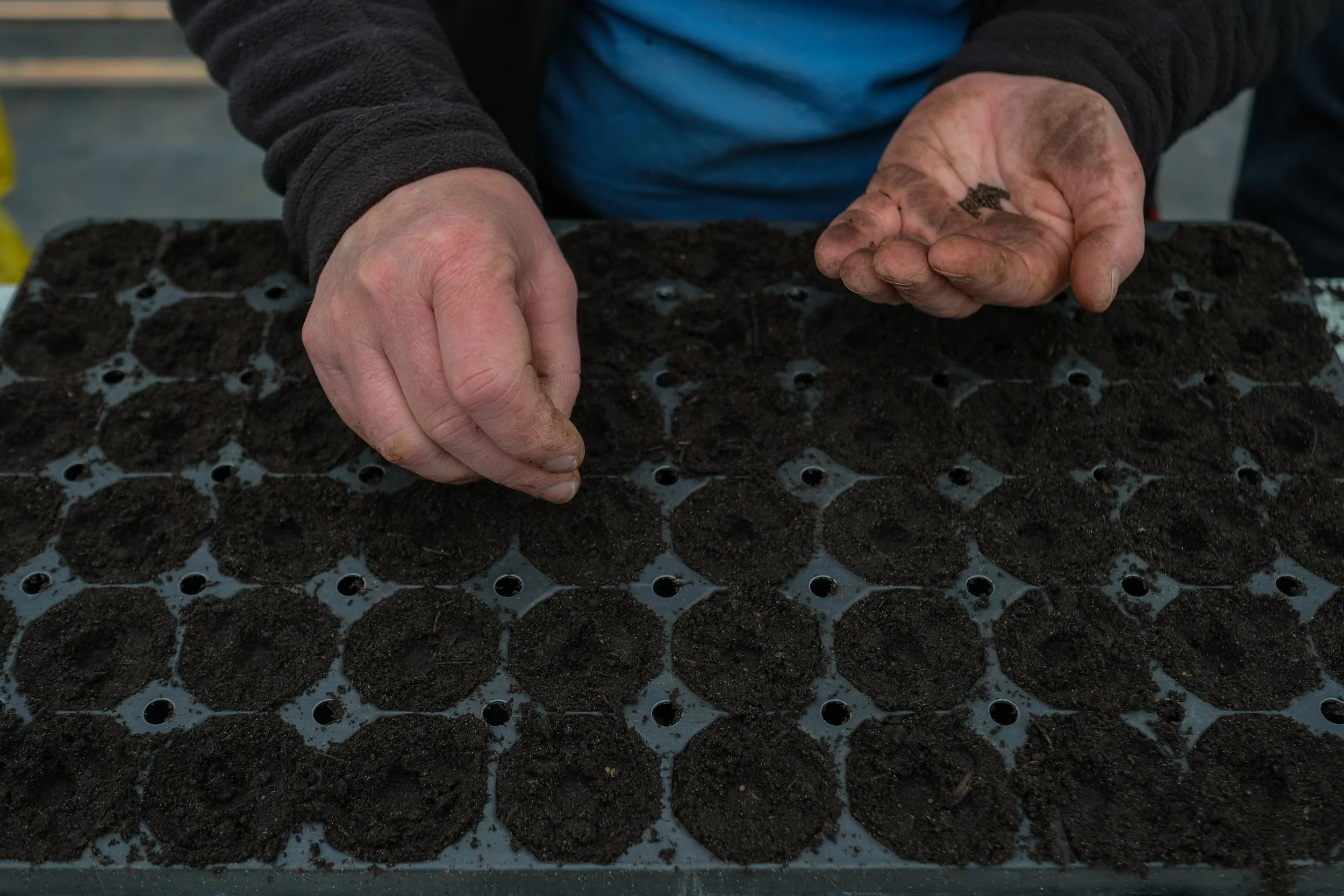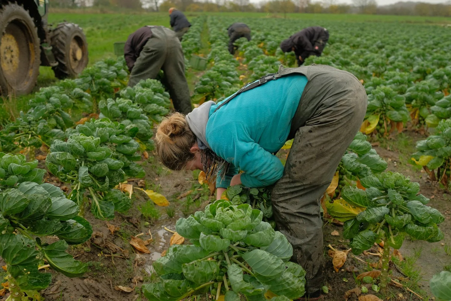 As the weather in times of climate change becomes more and more unpredictable and therefore the time frames farmers need to accomplish a specific soil care treatment are getting smaller, the farmers on the Kattendorfer Hof work with undersown crops. Lukas Fröhlich sows cabbage together with grasses and white clover. The growth of the undersown crops temporarily ends when the cabbage leaves cover the soil and stop the light supply. After the cabbage harvest is finished, the time for the undersown crops has come: It can continue to grow, providing the desired effect to nurture the soil and prevent it from erosion.