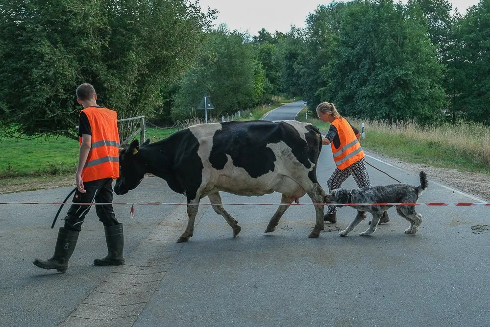 The organic Kattendorfer Hof is based on the circular economy according to which no more resources may be withdrawn than can be returned. That’s why the number of animals is linked to the available amount of hectares and thus the available food. From spring to autumn, the 70 cows graze on generous pastures. Twice a day they are driven back to the milking parlour through the meadows of Schleswig-Holstein.