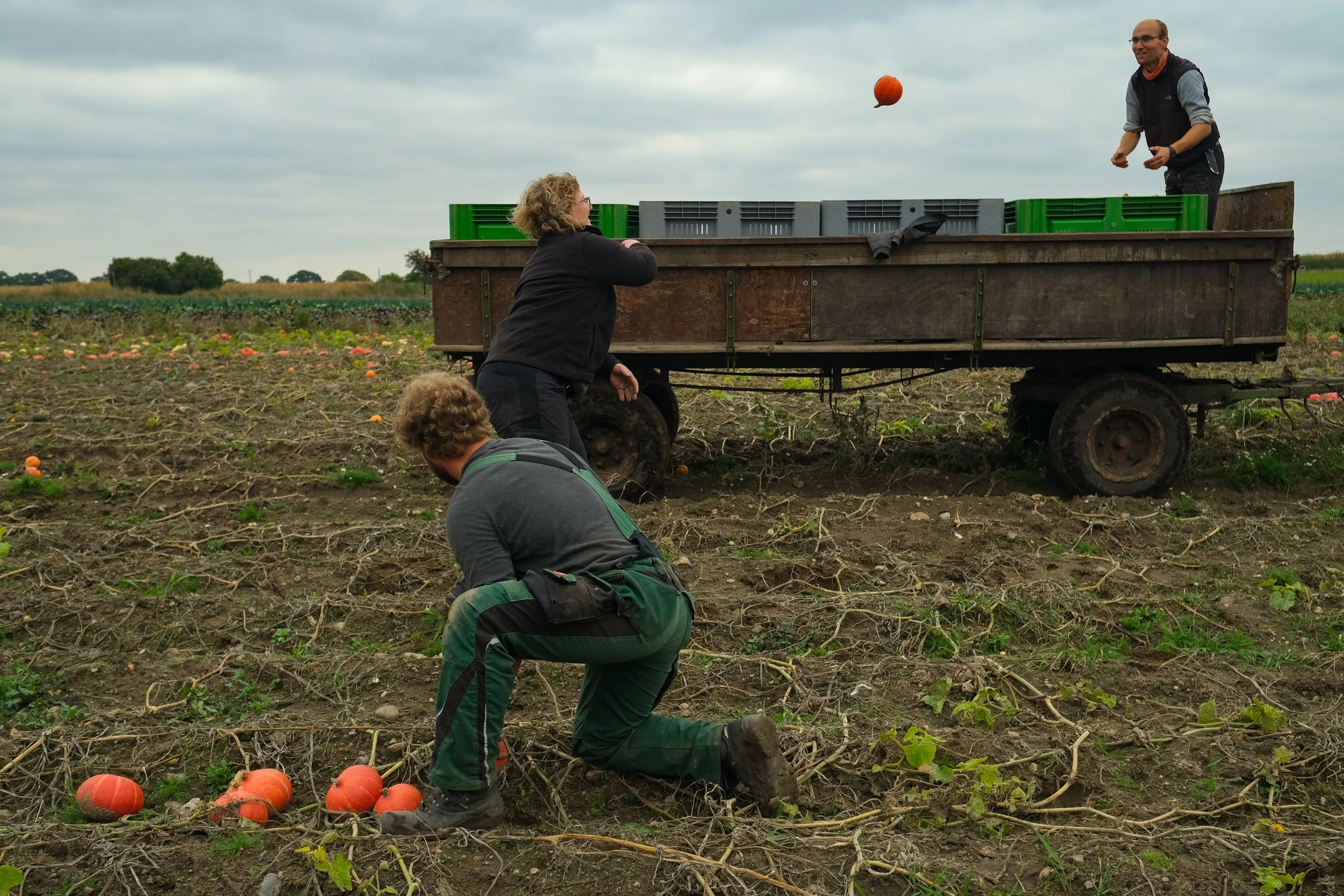 Each morning at 9 a.m. the farmers meet for the daily morning round in the courtyard of the farm in Kattendorf. Before everyone gives a short report on the work to be done that day, the group sings together. When I made this photo, in October 2021, the farm crew started their working day with the “Irish Travel Blessing”: “May the road rise to meet you / May the wind be at your back / May the sun shine warm upon your face / The rains fall soft upon your fields…”