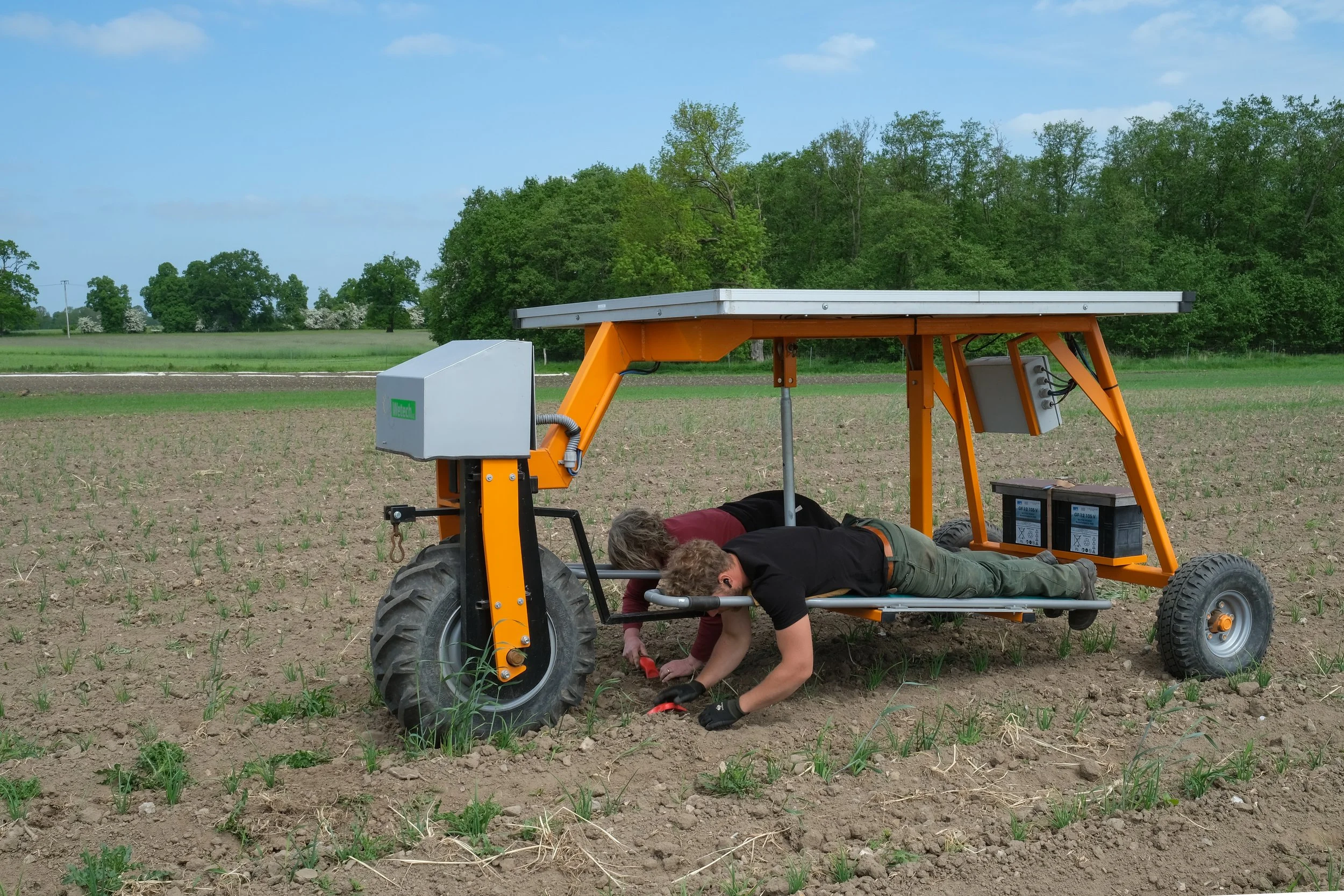 Farmer Lukas Fröhlich with his son Paale on the tractor, preparing the field for a new season by means of shallow tillage. This gentle form of tillage helps to maintain soil structure, fertility, and organic matter while minimizing soil disturbance. The added chain is designed to crush bigger clods of earth.