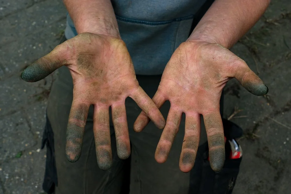 Farmer’s pride: Lukas Fröhlich examines the humus in Neverstaven. Earthworms are an indicator of soil health, they improve soil structure by dragging down organic matter and aerate the soil by creating tunnels which also improve drainage.